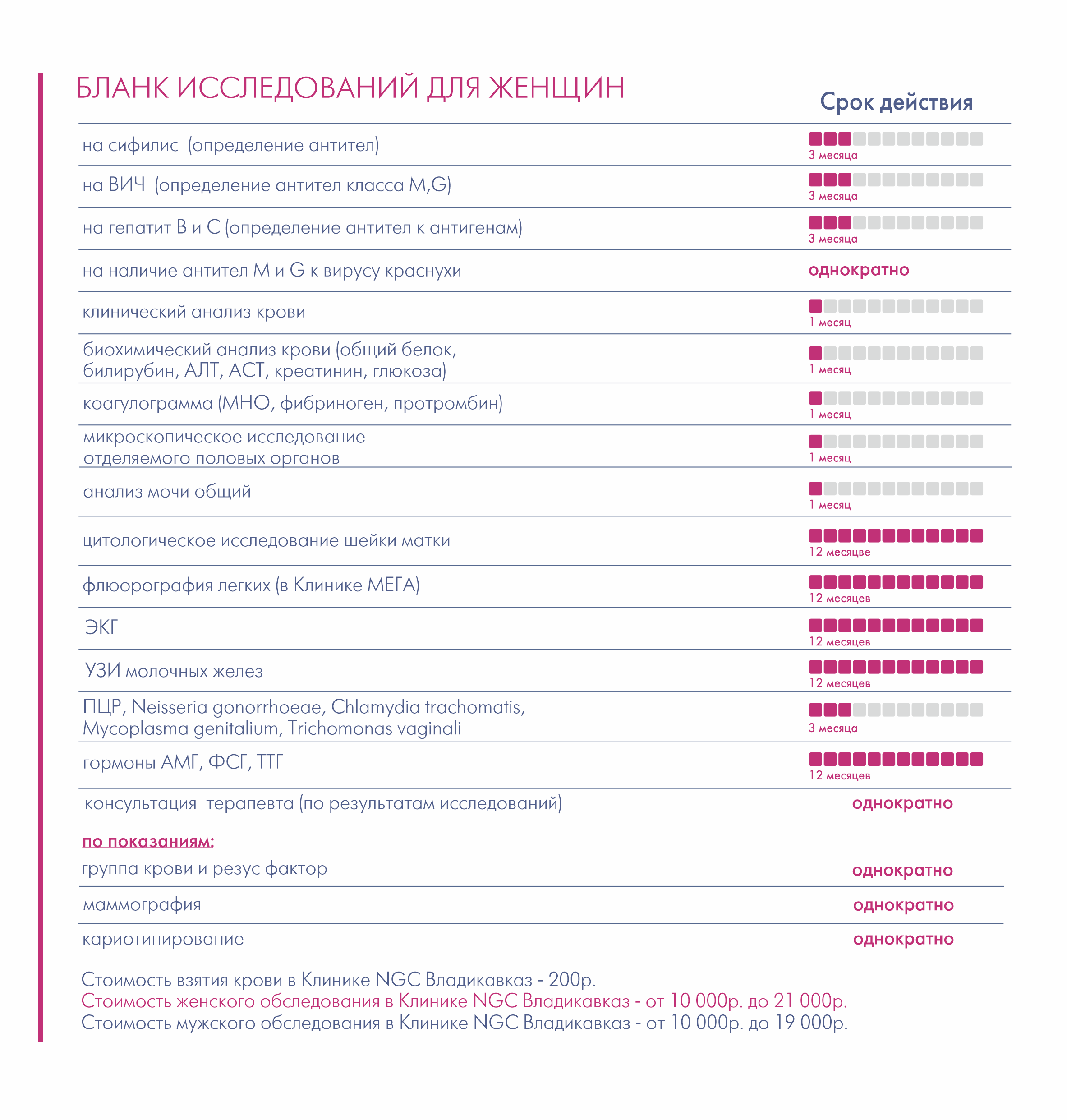 Будущие папа и мамы проходят обследования, которые зафиксированы в перечне Приказа МЗ РФ от 30.08.2012 № 107н (26 – для женщины, 8 для мужчины).